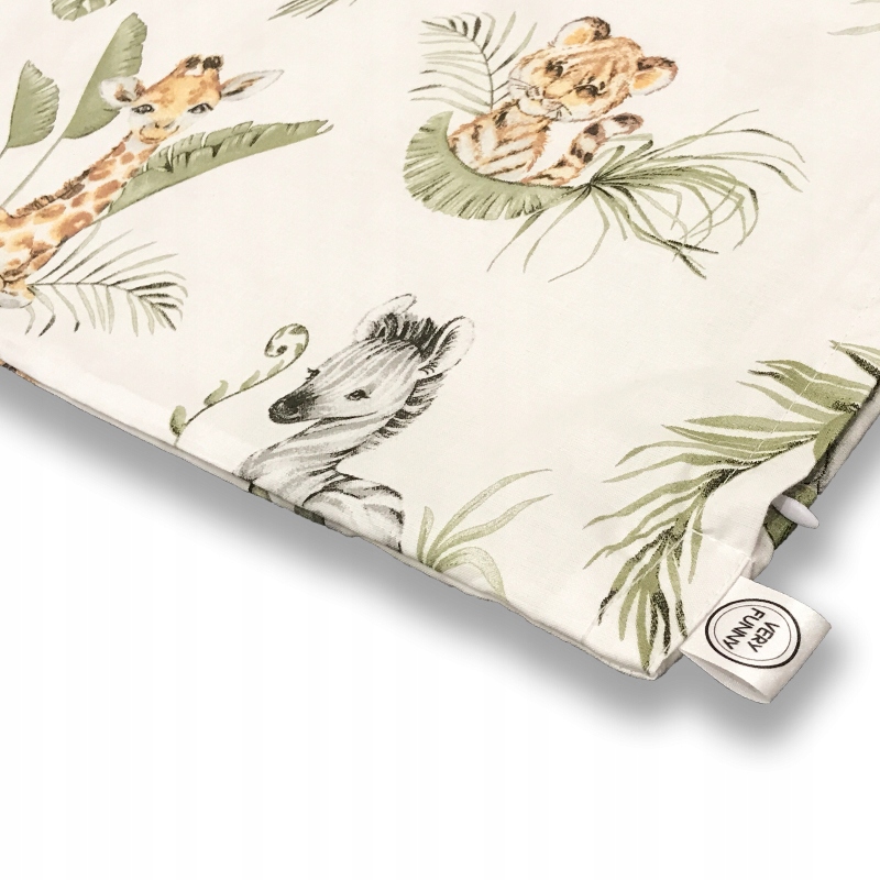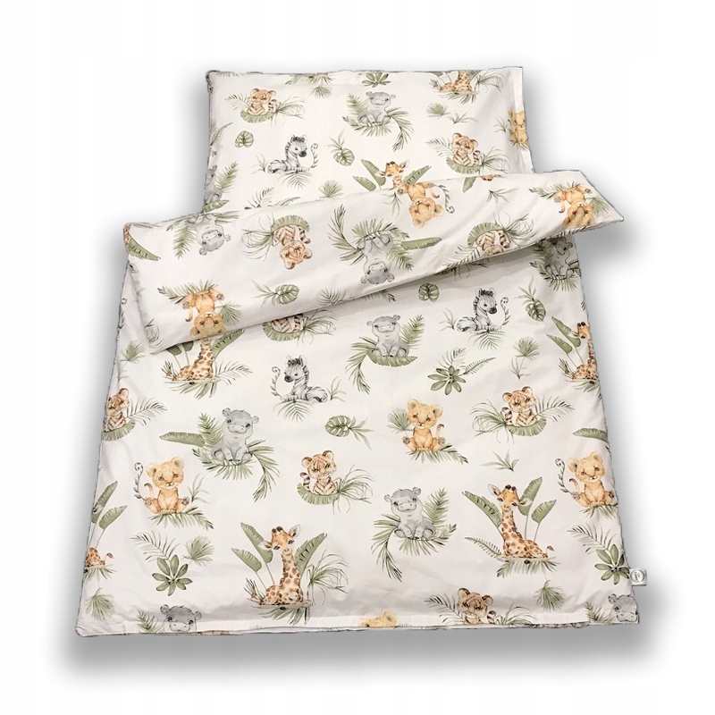 Komplet pościeli bawełnianej do łóżeczka – Baby Zoo. W skład zestawu wchodzą: poszwa na kołderkę w rozmiarze 80×100 cm, oraz poszewka na poduszkę 40×60 cm. Są to standardowe wymiary pościeli pasujące do łóżeczek dla dzieci w wieku od 0-2 lat. Materiał to 100% bawełna o gramaturze 125 g/m2, która gwarantuje trwałość produktu. W dotyku jest gładka i miękka, a co najważniejsze pozwala skórze swobodnie oddychać. Zapinanie zamek błyskawiczny ukryty pod listwą.