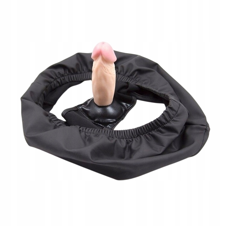 Błyszczące majtki z wszytym dildo, uszyte tak, aby można je było nosić, bez obawy, iż dildo wyślizgnie się w nieoczekiwanym momencie.
