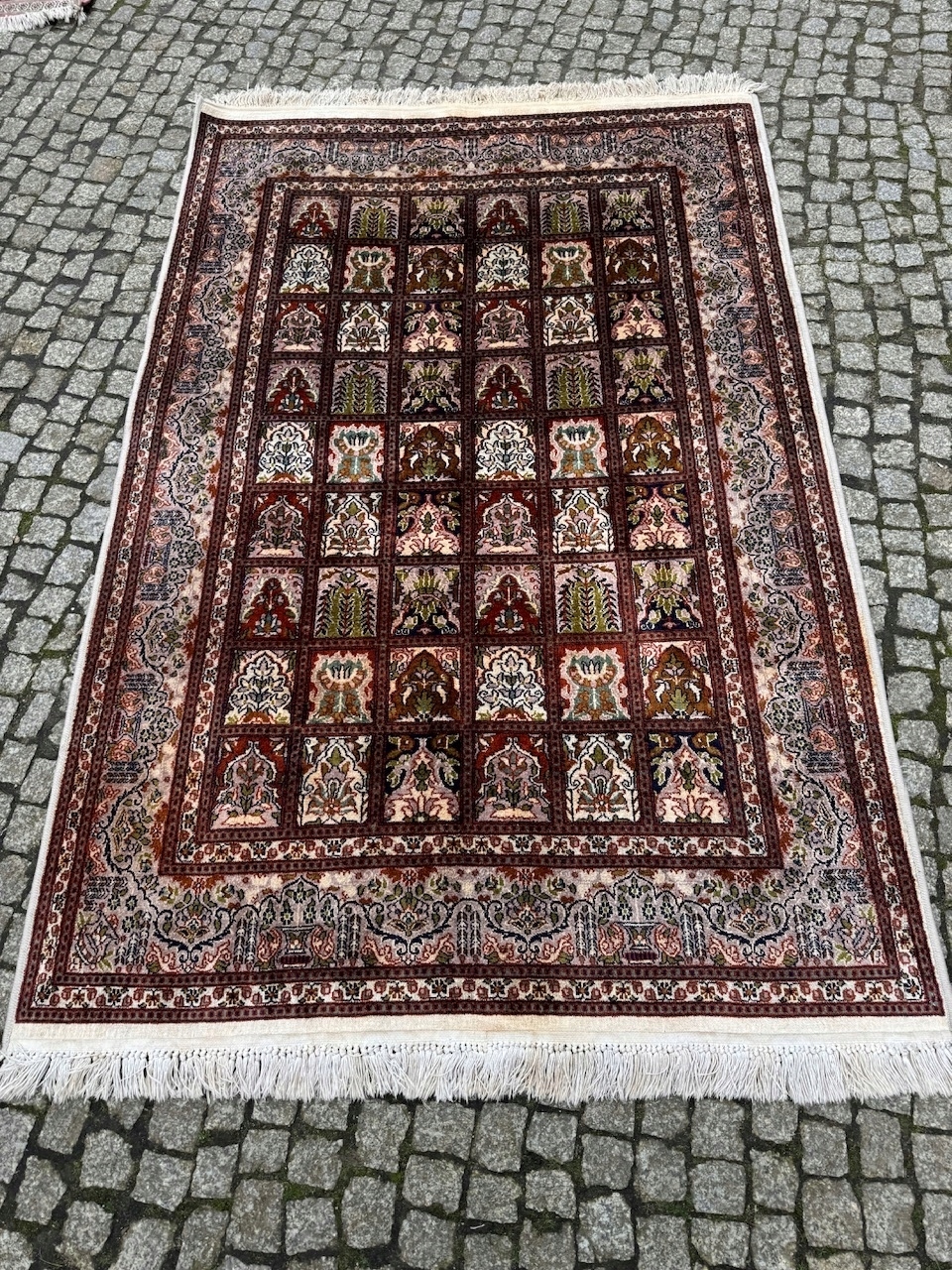 PRZEDMIOT: Dywan ręcznie tkany perski Ghoum. Posiada certyfikat autentyczności. W galerii przed przeceną kosztował prawie 2.900 euro czyli około 13.000 zl. Rasowe perskie wzory powodują, że dywan ten pasuje do wielu wnętrz. Nazwa pochodzi miasta, w którym są wytwarzane i odnosi się do wyższej klasy dywanów z grupy.