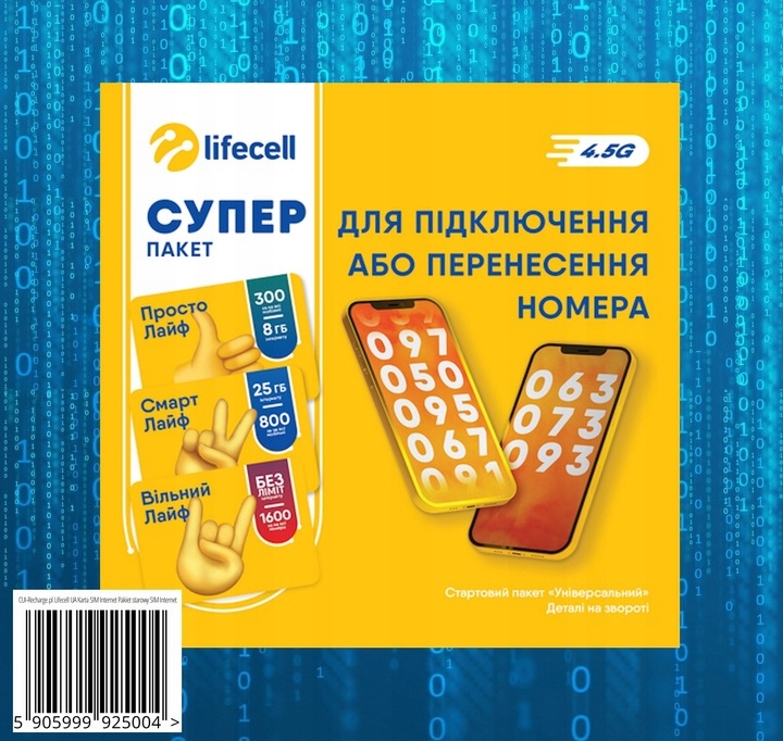 Чтобы еще больше облегчить вам использование нашего предложения, мы присоединяемся инструкция по активации, которая шаг за шагом проведет вас через процесс запуска службы. Дополнительно, мы предоставляем различные варианты пополнения, которые легко доступны на веб-сайте оператора lifecell или через платформу Allegro. Не беспокойтесь о возможных проблемах - наша поддержка активация доступна.