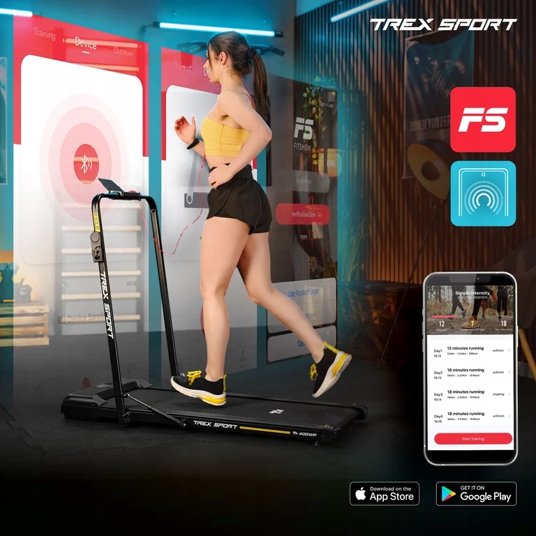 Функция Bluetooth и возможность подключения беговой дорожки к таким приложениям, как FitShow они играют ключевую роль в персонализации и разнообразии вашего обучения. Вы можете подключить с вашим смартфоном или планшетом, и у вас есть доступ к широкому спектру программ обучения, которые они адаптированы к различным целям фитнеса - от потери веса до наращивания выносливости, вплоть до интервальных тренировок.