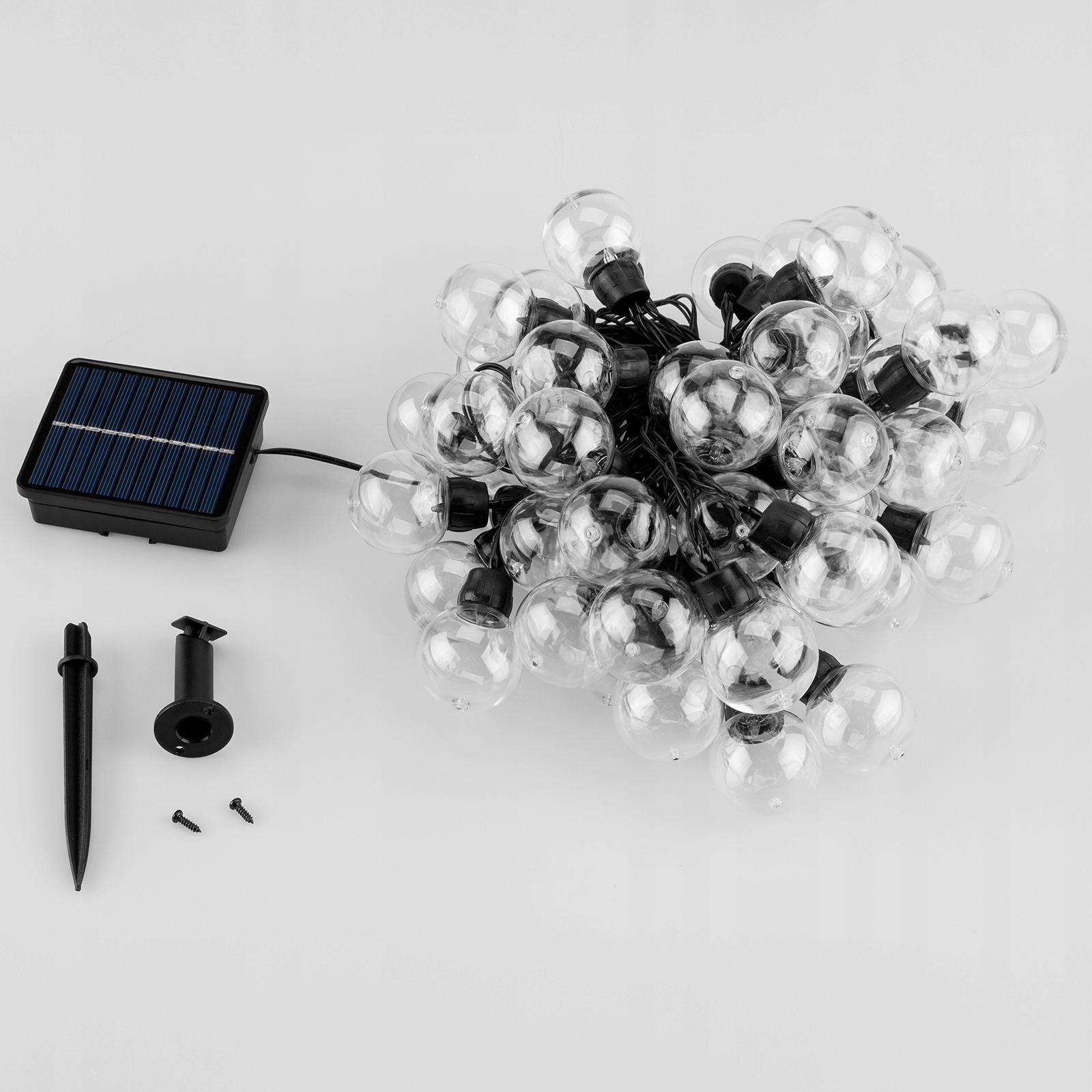 Lampa wyposażona jest w amorficzny panel solarny, dzięki któremu skutecznie ładuje się nawet przy rozproszonym świetle dziennym, zapewniając delikatne, neutralne oświetlenie po zmroku. Technologia amorficzna wyróżnia się wysoką sprawnością energetyczną, umożliwiając efektywne działanie nawet przy słabym nasłonecznieniu. Dodatkowo, panel tego typu charakteryzuje się odpornością na wysokie temperatury, co minimalizuje spadki wydajności podczas upałów. Girlanda posiada energooszczędne diody LED oraz akumulator o pojemności 1800mAh, co zapewnia jej niezawodne działanie przez długi czas. Jest to doskonałe połączenie estetyki i ekonomicznej efektywności.