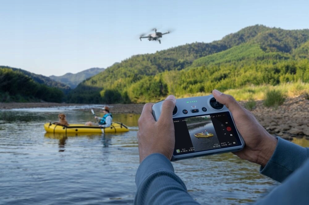 W tym zestawie znajdziesz aparaturę sterującą DJI RC. Ma ona wbudowany wyświetlacz FHD i pojemną baterię. Preinstalowana tu aplikacja DJI Fly umożliwia sterowanie dronem bez potrzeby korzystania ze smartfona czy tabletu.