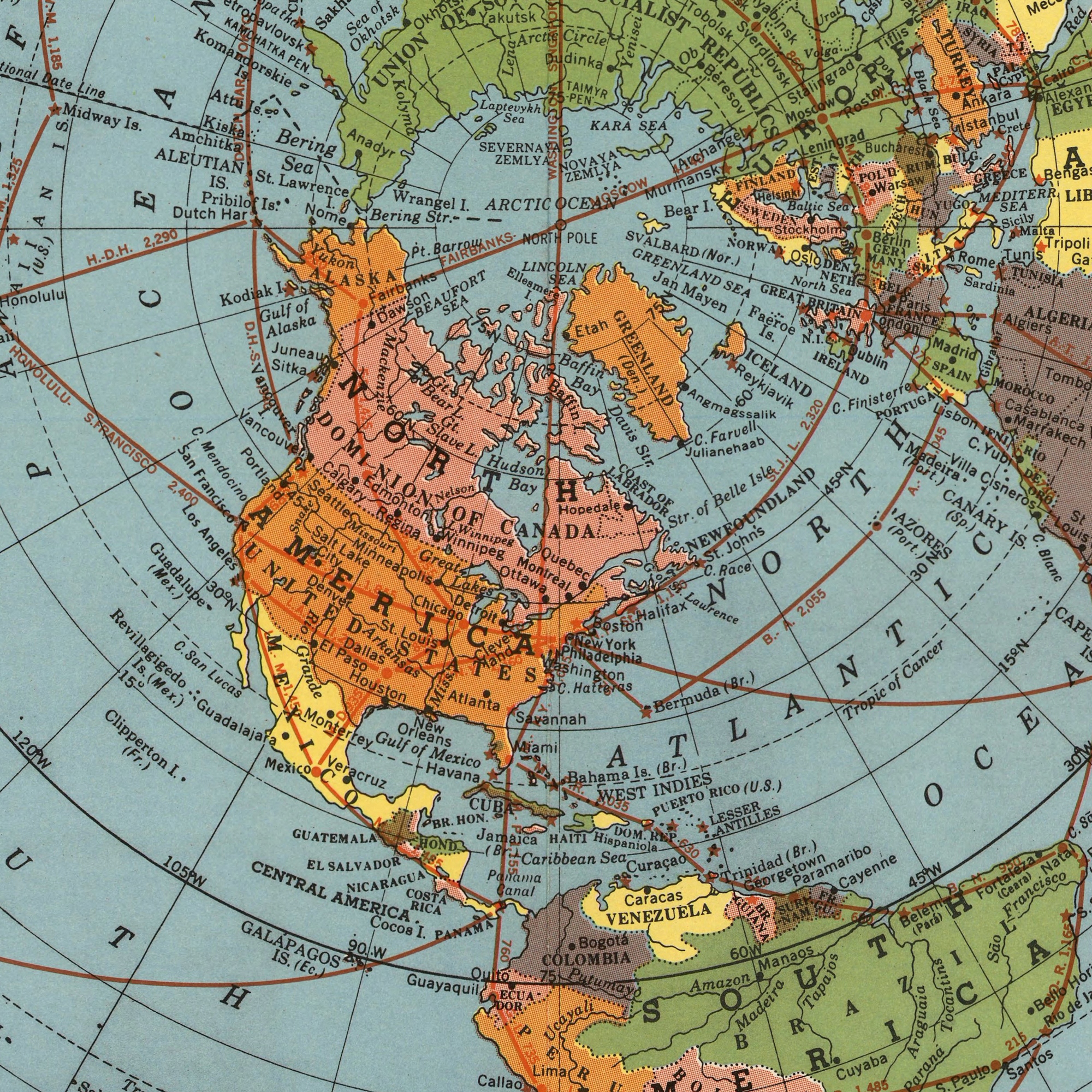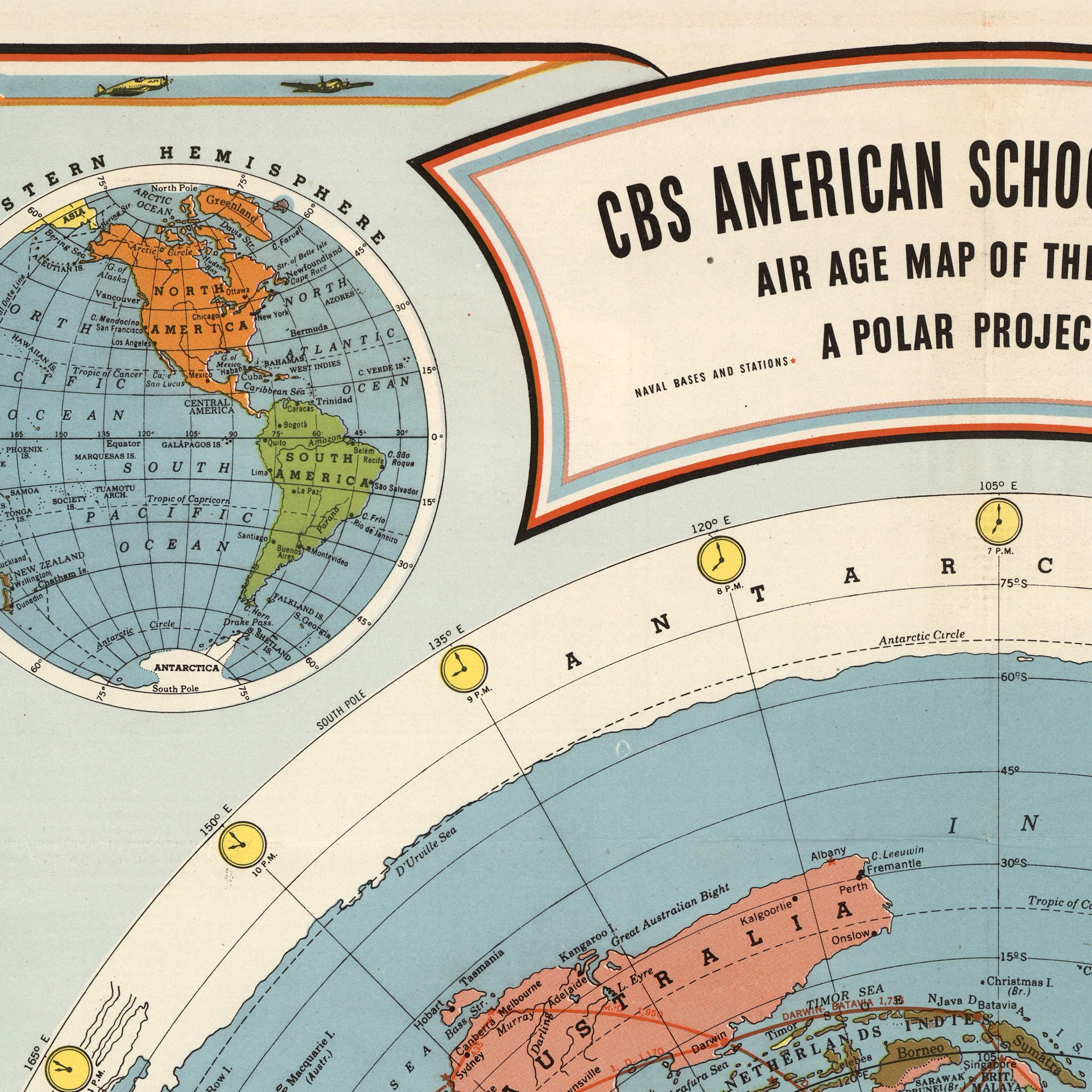 Reprodukcja mapy CBS American School of the Air, Air Age Map of the World, A Polar Projection.