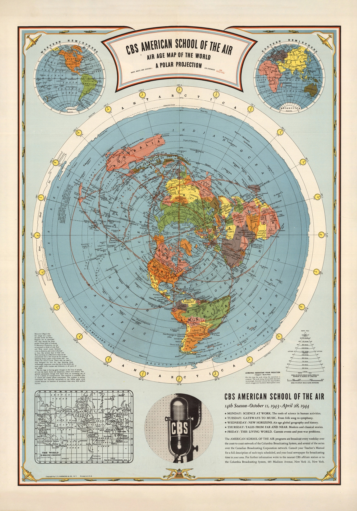 Reprodukcja mapy CBS American School of the Air, Air Age Map of the World, A Polar Projection.
