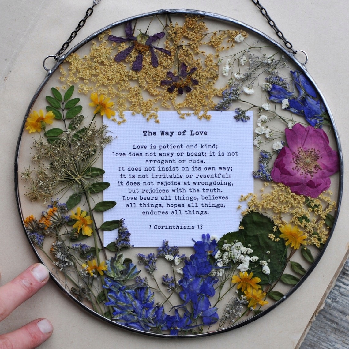 Szukasz wyjątkowego prezentu z klasą dla nowożeńców lub bliskich osób? Oto propozycja, która z pewnością zachwyci - dekoracyjny witraż z kompozycją suszonych roślin, wykonany w całości w pracowni rękodzieła MARIAELA.