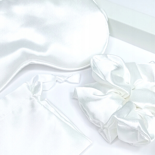 Zapraszamy do poznania naszego ekskluzywnego zestawu satynowego, który zapewni Ci nie tylko spokojny sen, ale również piękny wygląd każdego ranka! Nasz komplet składa się z trzech niezbędnych elementów - opaski do spania na oczy, gumki do włosów i woreczka do przechowywania.