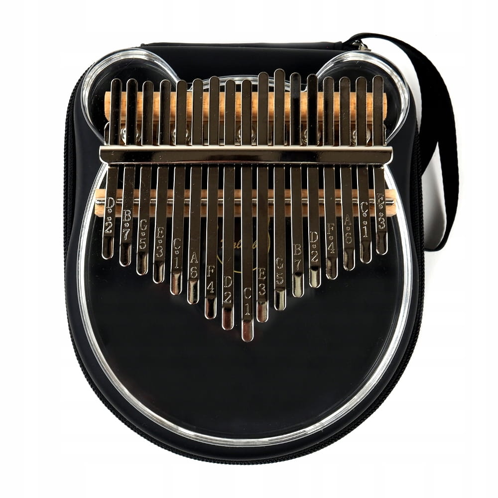 Stylowa akrylowa kalimba wykonana z wysokiej jakości materiałów, odpowiednio dobranych i precyzyjnie spasowanych ze sobą - dzięki temu instrument cechuje się pięknym, czystym brzmieniem i doskonałą akustyką. Drgające blaszki (klawisze) wykonane są z połyskującego metalu i fabrycznie ustawione w międzynarodowym, standardowym projekcie strojenia C. Gra na kalimbie jest bardzo łatwa do opanowania – by wydobyć dźwięki po prostu naciskamy kciukami klawisze.