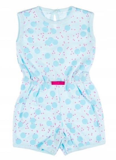 Bawełniany rampers bez rękawków, w zabawny wakacyjny wzór dużych i małych groszków.