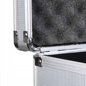Wyprodukowano ze stopu aluminium; metal jest wzmocniony wokół niego; odporny na krople i ognioodporny.