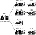 Przewodnik w rozmowie z grupą gości. Tłumacz, który tłumaczy wiadomości z języka podłoża na język obcy.