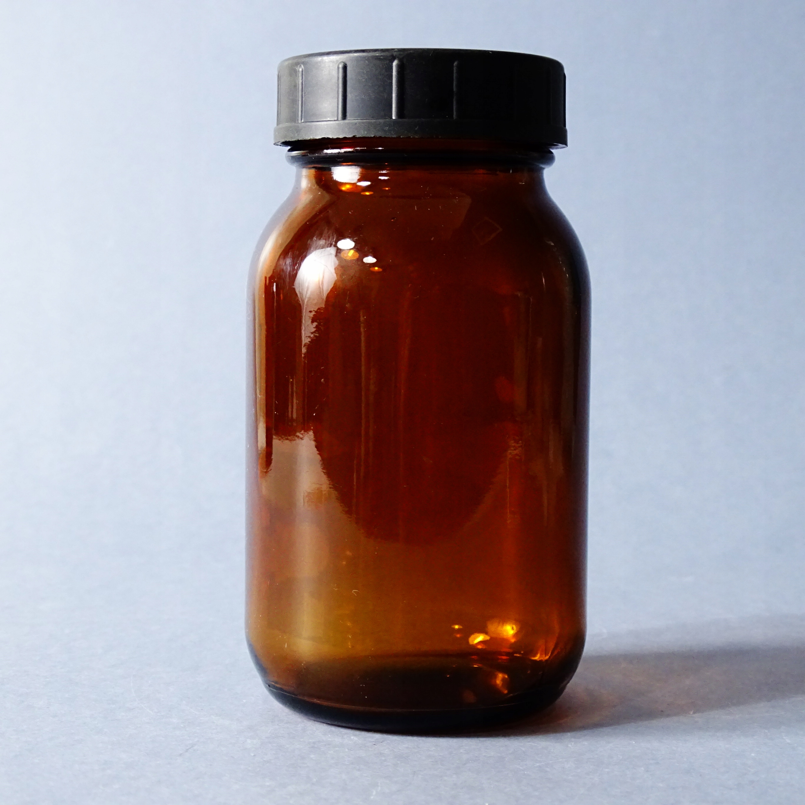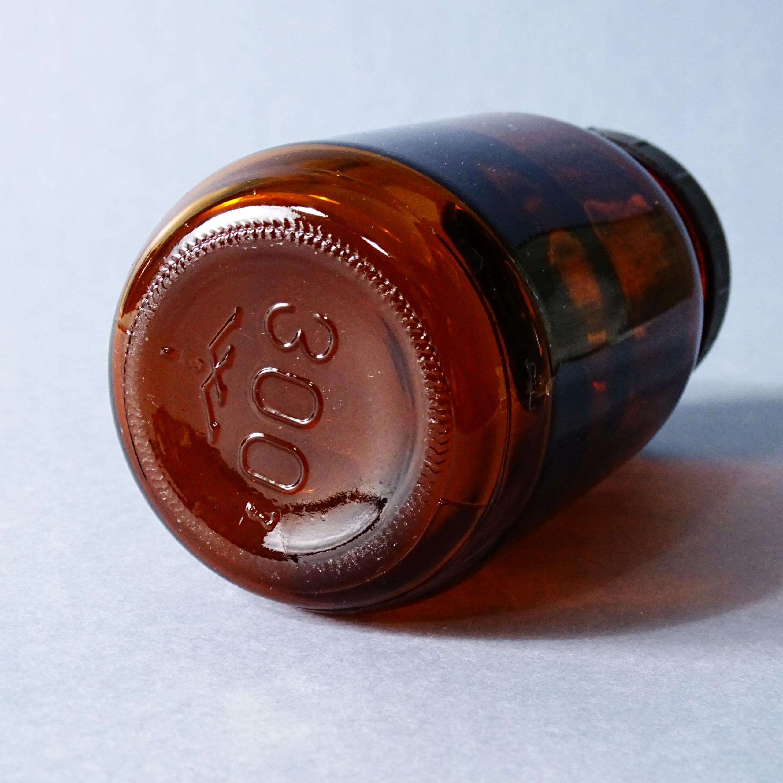 Bardzo ładny pojemnik z barwionego szkła z bakelitowym zamknieciem.
