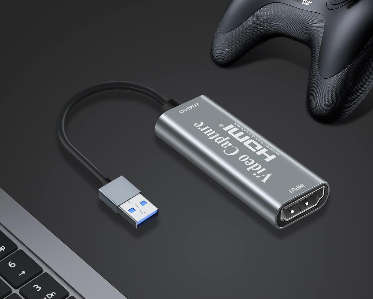 【Szeroka kompatybilność】: Ta karta przechwytująca HDMI na USB z łatwością łączy lustrzankę cyfrową, kamerę lub kamerę akcji, PS5/4, smartfony, przełącznik, XBOX z komputerem PC lub Mac, kompatybilną z systemem operacyjnym Windows/Android/Mac.