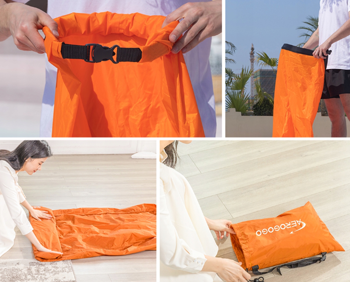 ➡️ Dzięki materiałom najwyższej jakości możesz swobodnie korzystać z materaca Aerogogo na polu kempingowym, plaży, nad basenem - w skrócie gdziekolwiek zechcesz!