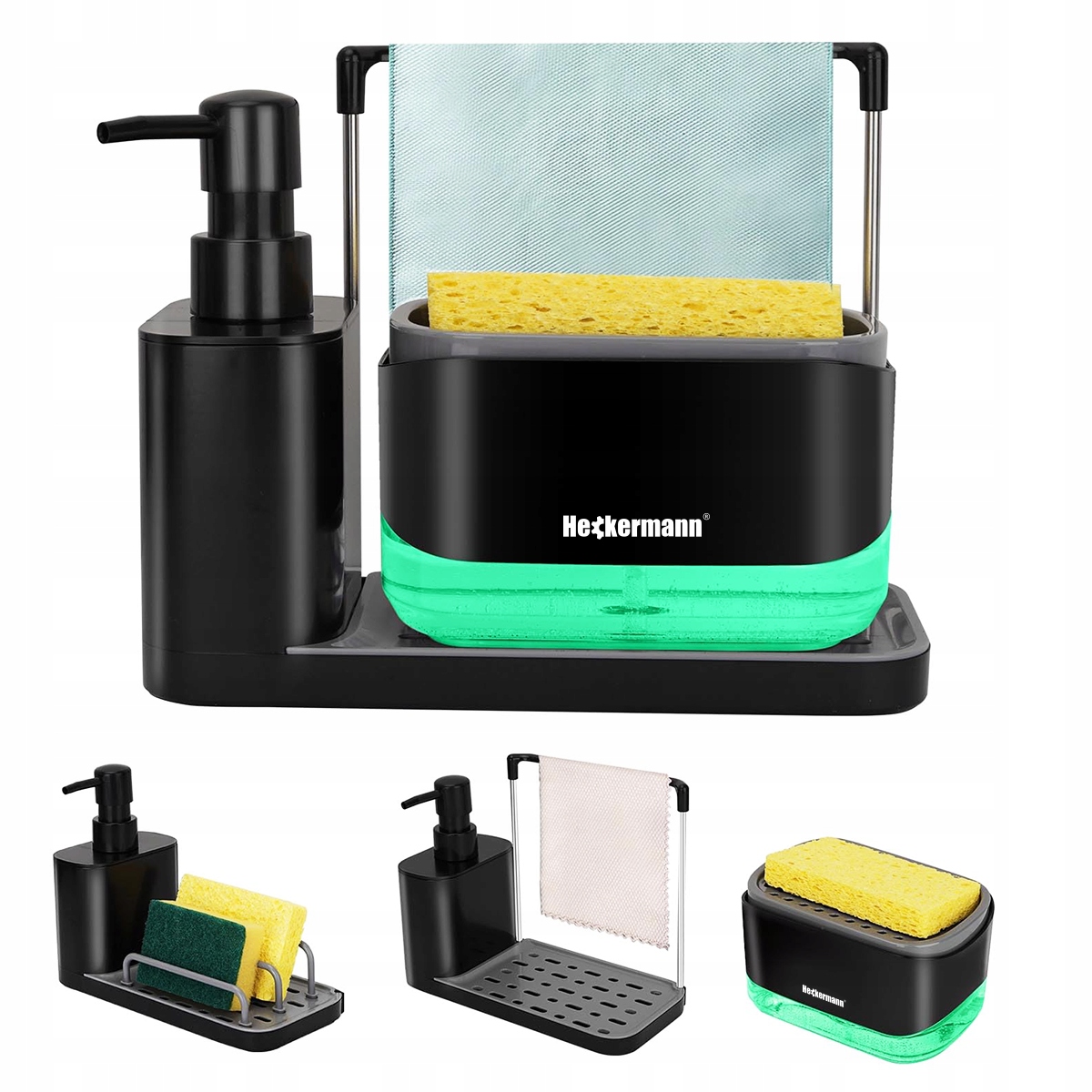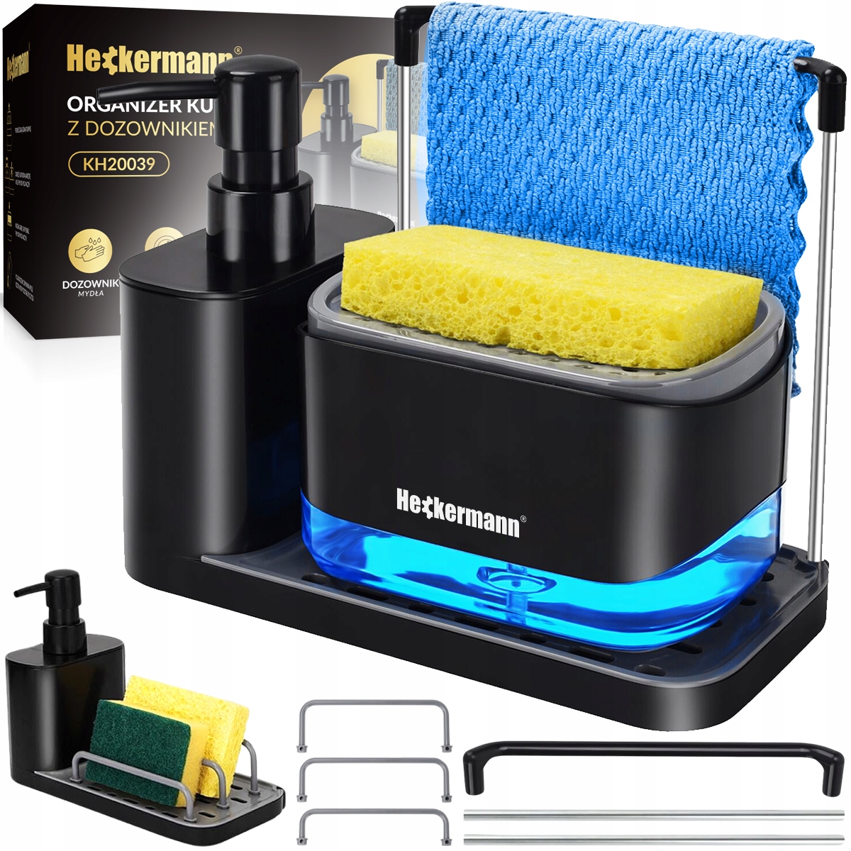 ⭐ Dozownik detergentów spełnia dwie funkcje - dzięki niemu wygodnie pobierasz płyn do mycia naczyń lub inny detergent na gąbkę, a także zyskujesz miejsce na odłożenie gąbki po zakończeniu prac sprzątających.