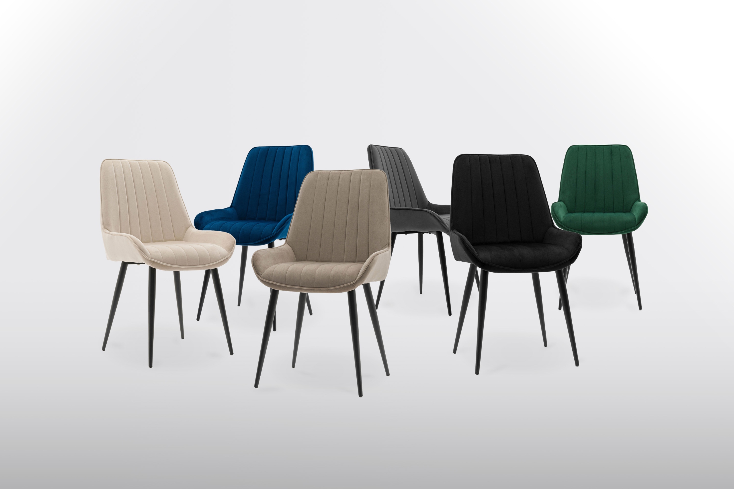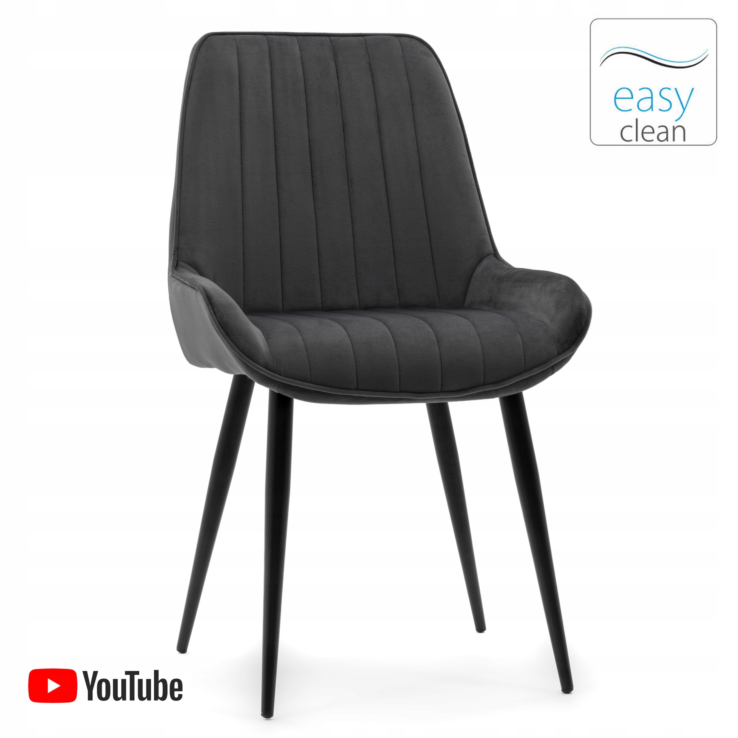 Wykonane z najwyższej jakości surowców. Siedzisko oraz oparcie pokryte jest tkaniną welurową. W krześle zastosowano nogi metalowe malowane proszkowo w kolorze czarnym, które dają niepowtarzalny efekt w każdym mieszkaniu. Nogi mają zabezpieczenia przed uszkodzeniem paneli podłogowych, drewnianych podłóg, powierzchni lakierowanych i podłóg ceramicznych.