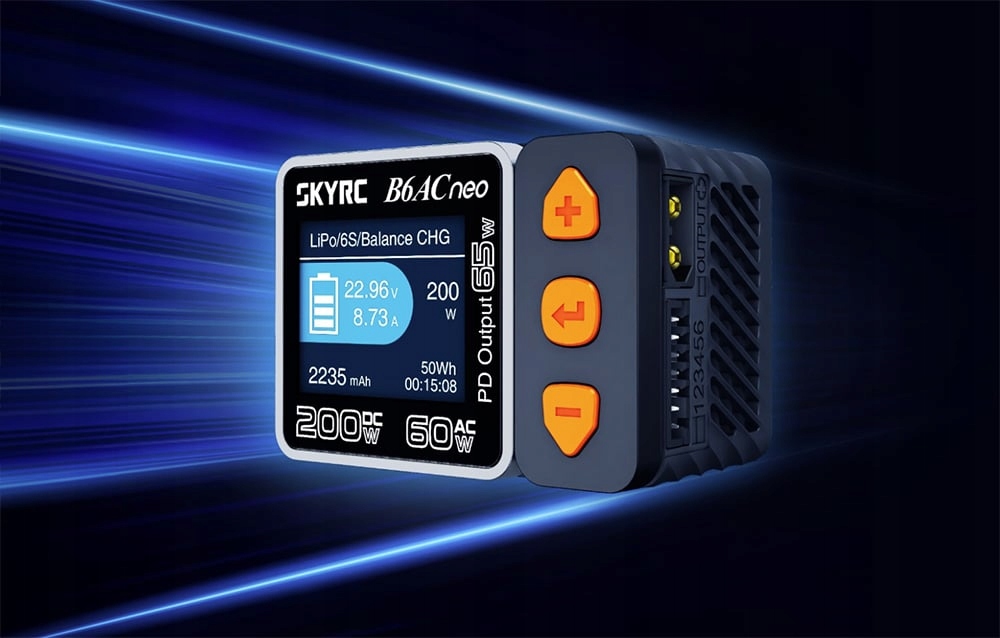 Ładowarka SkyRC B6AC Neo zaskoczy Cię ogromem możliwości. Umożliwia ładowanie akumulatorów z mocą do 200 W (DC) lub 60 W (AC), a także ich rozładowywanie i monitorowanie ich kondycji. Wyróżnia się imponującą wydajnością i cichą pracą, a dzięki wykorzystaniu technologii GaN jest wyjątkowo kompaktowa, co znacznie ułatwia jej transport. Urządzenie sprawdzi się również w roli zwykłej ładowarki do smartfona czy laptopa – zapewni moc na poziomie nawet 65 W.