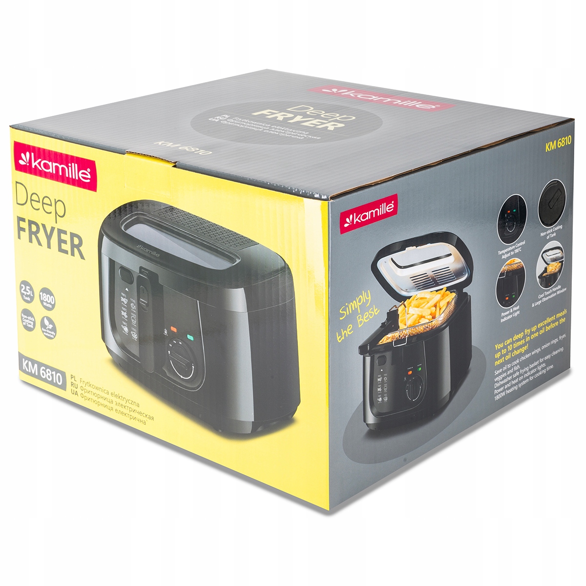 ➡️ Frytownica KAMILLE z pewnością zachwyci wszystkich miłośników przekąsek z ziemniaków i smażonych mięs. Umożliwia usmażenie w kilka minut idealnych frytek - chrupiących z zewnątrz i miękkich w środku. Można w niej również smażyć inne produkty takie jak mięso, ryby, grzyby czy warzywa.