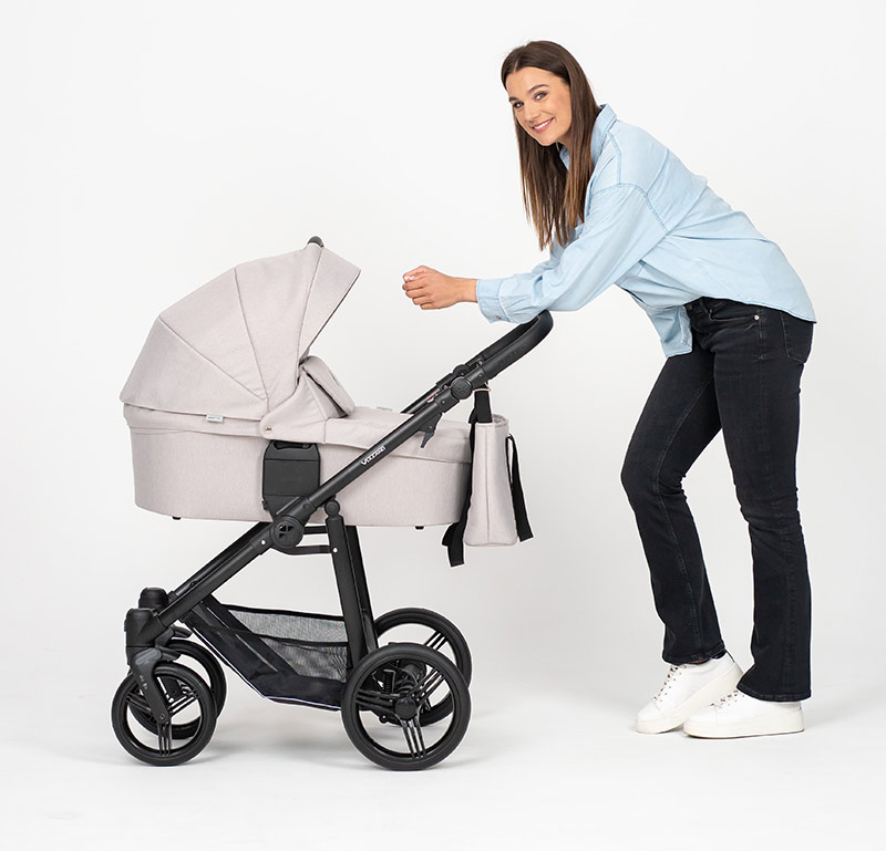 Благодаря адаптерам люлька может быть прикреплена к стойке на двух высотах. Это очень хорошо решение, с помощью которого вы можете расположить тележку таким образом, чтобы обеспечить себе как самый удобный доступ к ребенку, независимо от вашего роста.