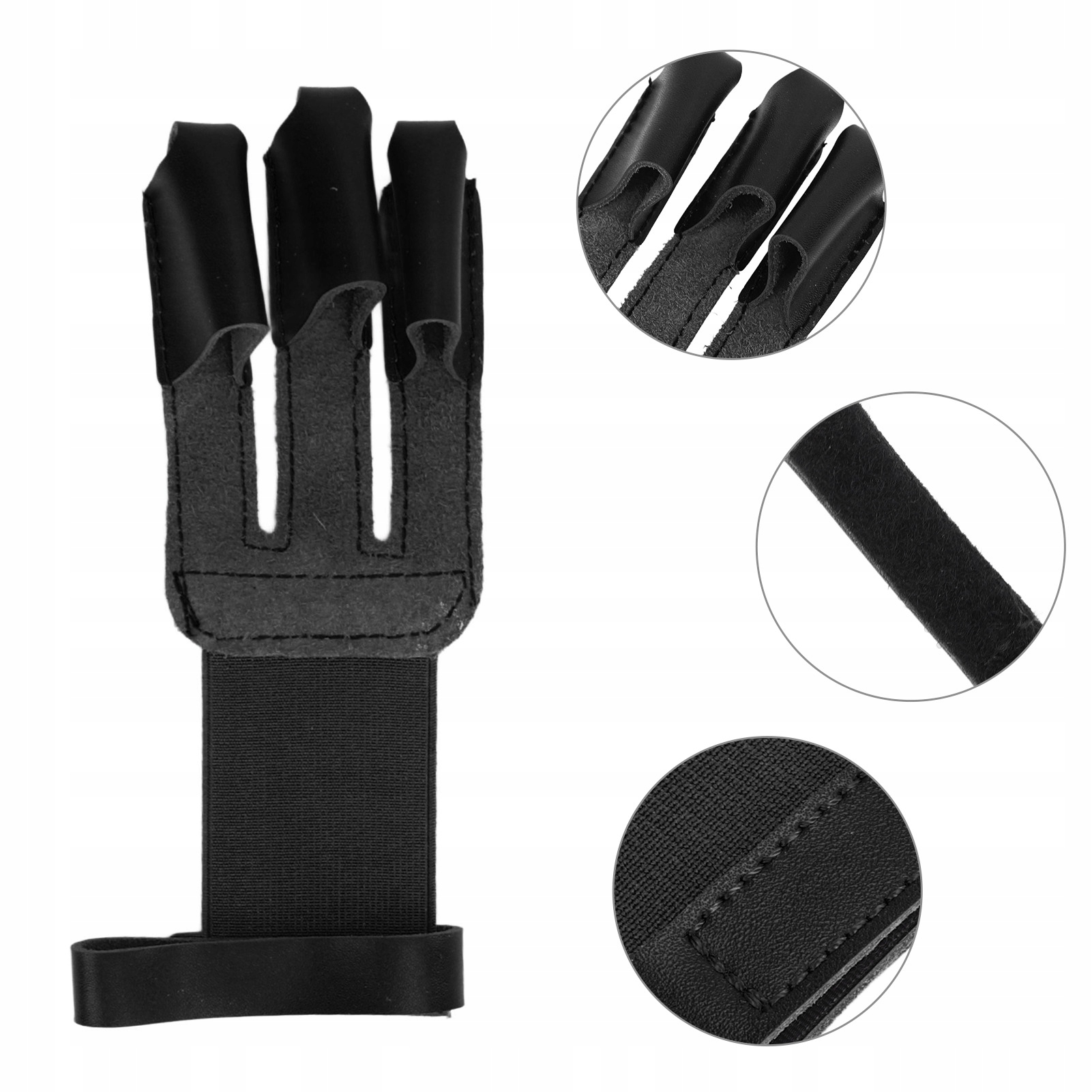 1. Rękawiczka z 3 palcami: konstrukcja z trzema palcami może skutecznie chronić palce i eliminować bolesność palców. Chroń palce przed strzałami, gdy ćwiczysz strzelanie z łuku, strzelanie lub celowanie.