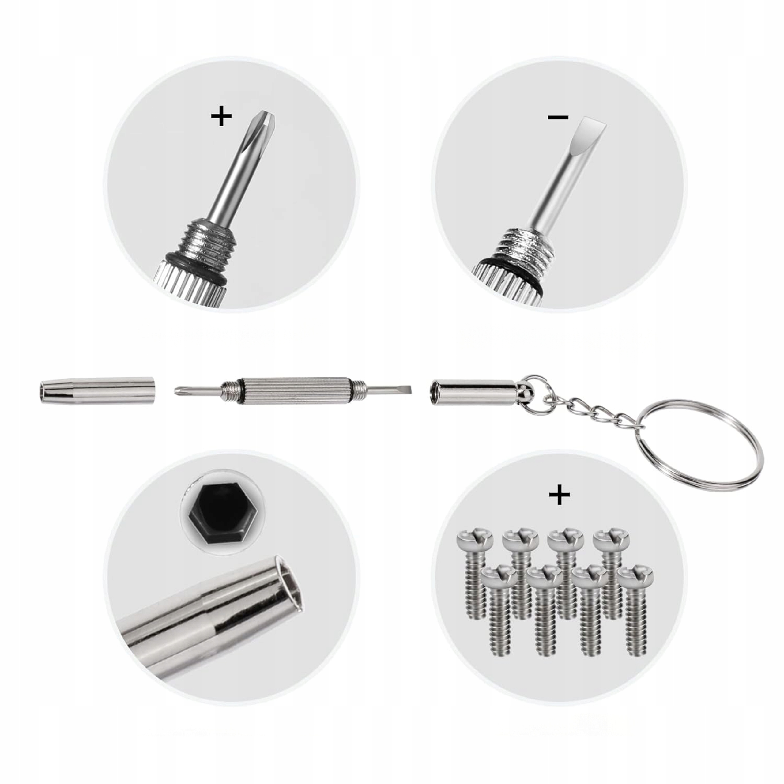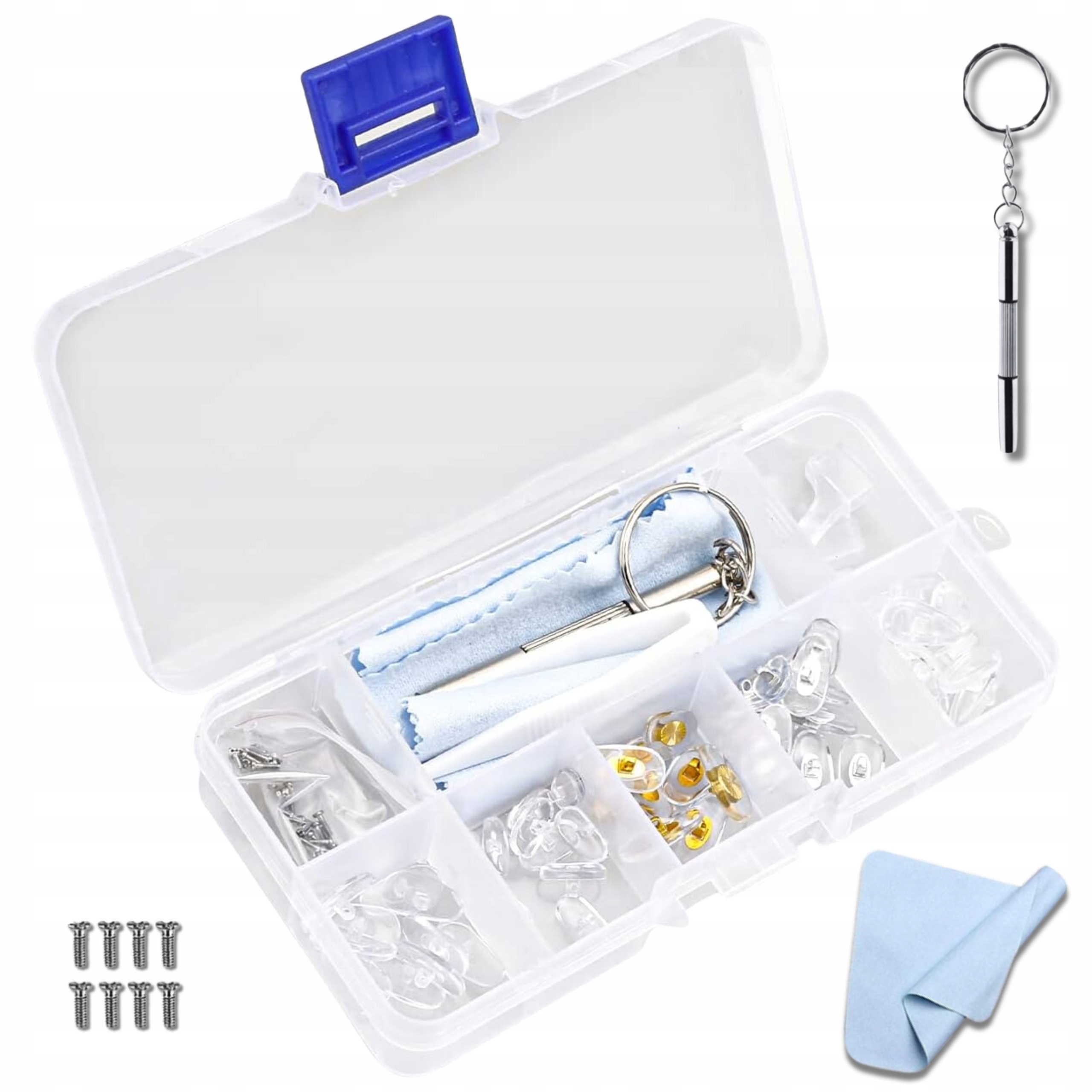 W zestawie znajdziesz również śrubokręt, 60 sztuk śrub pasujących do różnorodnych oprawek, pęsetę do precyzyjnego montażu, ściereczkę do czyszczenia okularów, która zapewni ich krystaliczną czystość, oraz praktyczny schowek na wszystkie elementy. To niezastąpiony zestaw dla każdego, kto ceni sobie niezawodność i chce mieć pod ręką niezbędne narzędzia do utrzymania okularów w idealnym stanie.