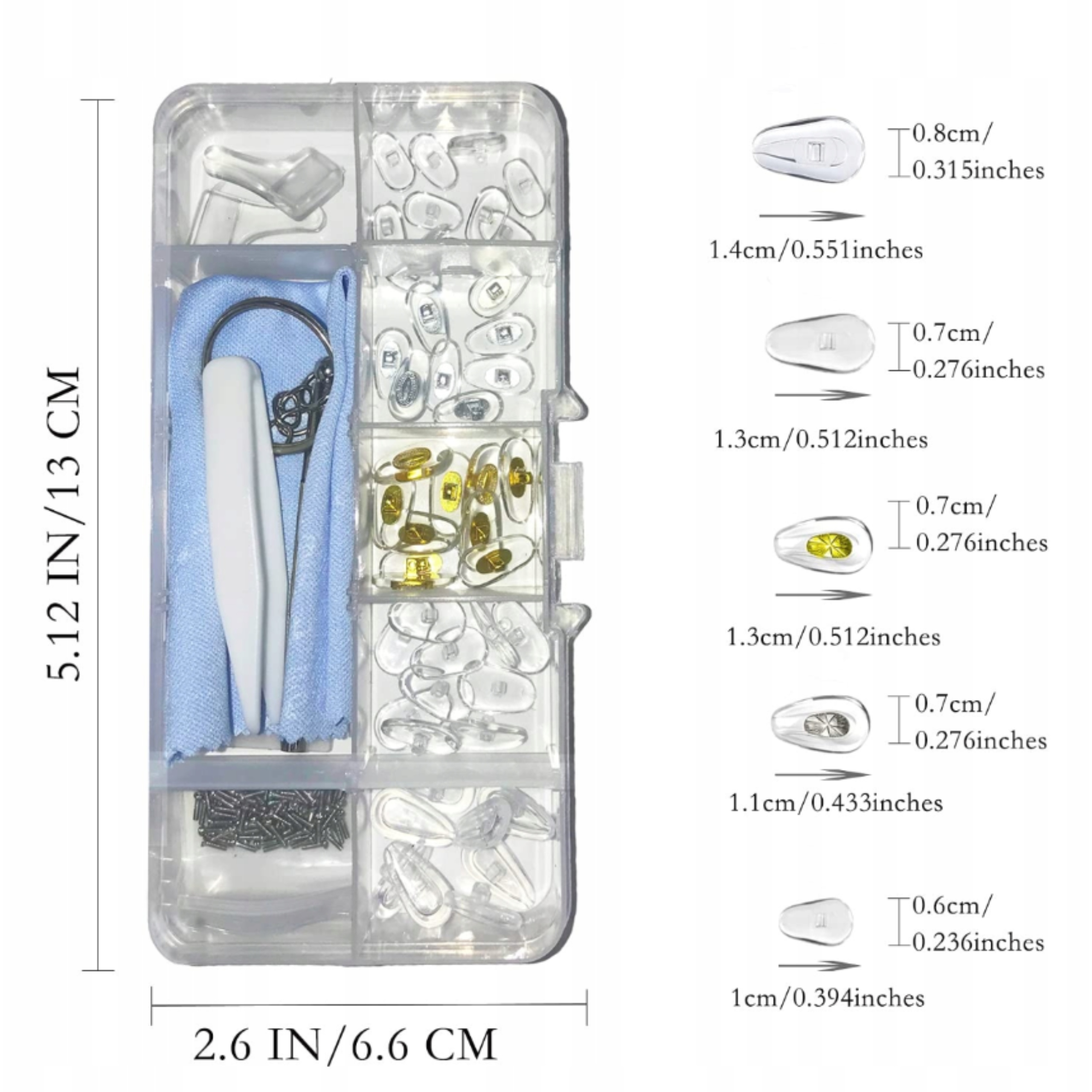 Zapewnij swoim okularom długotrwałą ochronę i komfort noszenia dzięki naszemu zestawowi nosków do naprawy okularów. Ten 25-elementowy zestaw zawiera wszystko, co potrzebne do szybkiej i skutecznej naprawy. W komplecie znajdziesz 5 par dużych, silikonowych nosków poduszek powietrznych, które zapewniają wyjątkową wygodę i przyczepność. Dla tych, którzy wolą subtelniejsze wsparcie, dołączono 10 par cienkich nosków z PVC. Dodatkowo, zestaw oferuje 5 par eleganckich miedzianych nosków w kolorze złotym i srebrnym, które nadają okularom stylowy wygląd. Dla mniejszych opraw idealne będą 5 par małych nosków z PVC.