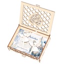 ✔️ Drewniane wykonanie, ażur na froncie pudełka - trwała pamiątka, która z czasem nie traci na wartości.