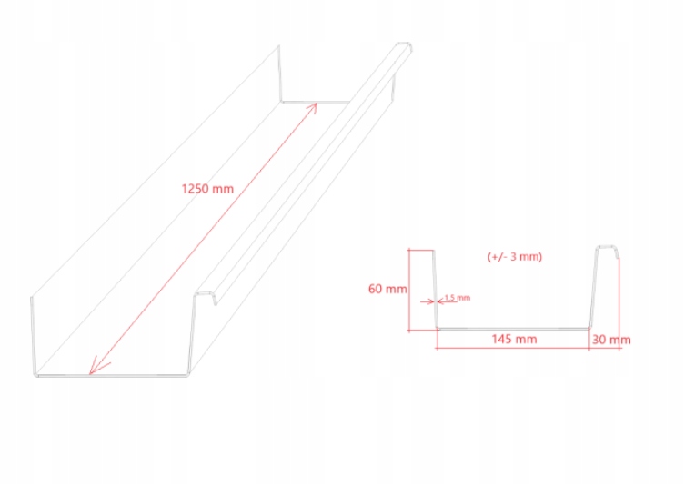 -belka świateł - (stal OCYNKOWANA) - zderzak pod światła długość L1250 - grubość blachy 1,5 mm szerokość w środku 145 mm (+/-3)