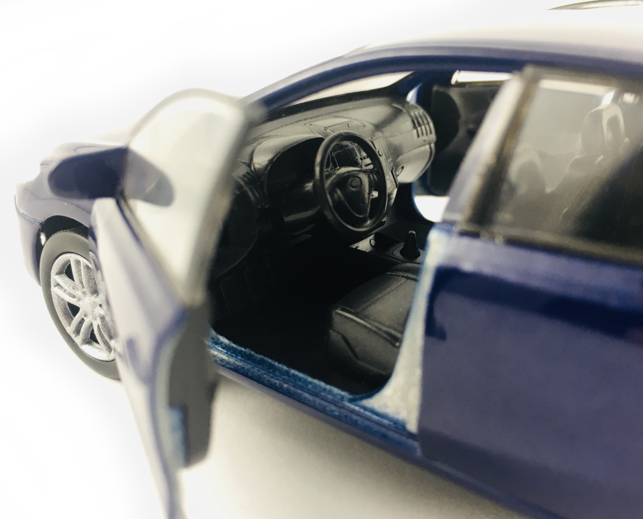 Auto wykonane jest z metalu (karoseria) oraz elementów plastikowych (wnętrze i podwozie).