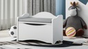 Kuferek na zabawki to idealne rozwiązanie dla najmłodszych. Powierzchnia kufra została starannie wykończona, tworząc elegancki i atrakcyjny wygląd, który pasuje do każdego wnętrza pokoju dziecięcego.
