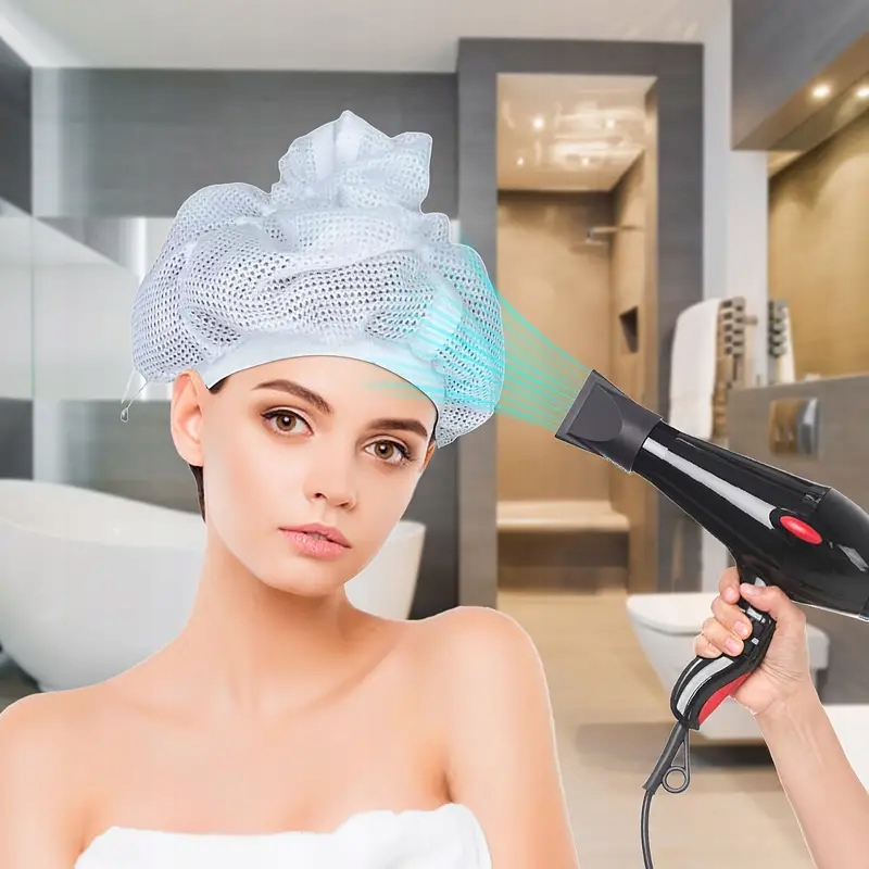 Siateczkowy czepek do suszenia kręconych włosów z delikatnej ale silnej i wytrzymałej siatki ze ściągaczem, czepek do suszenia włosów, wielokrotnego użytku