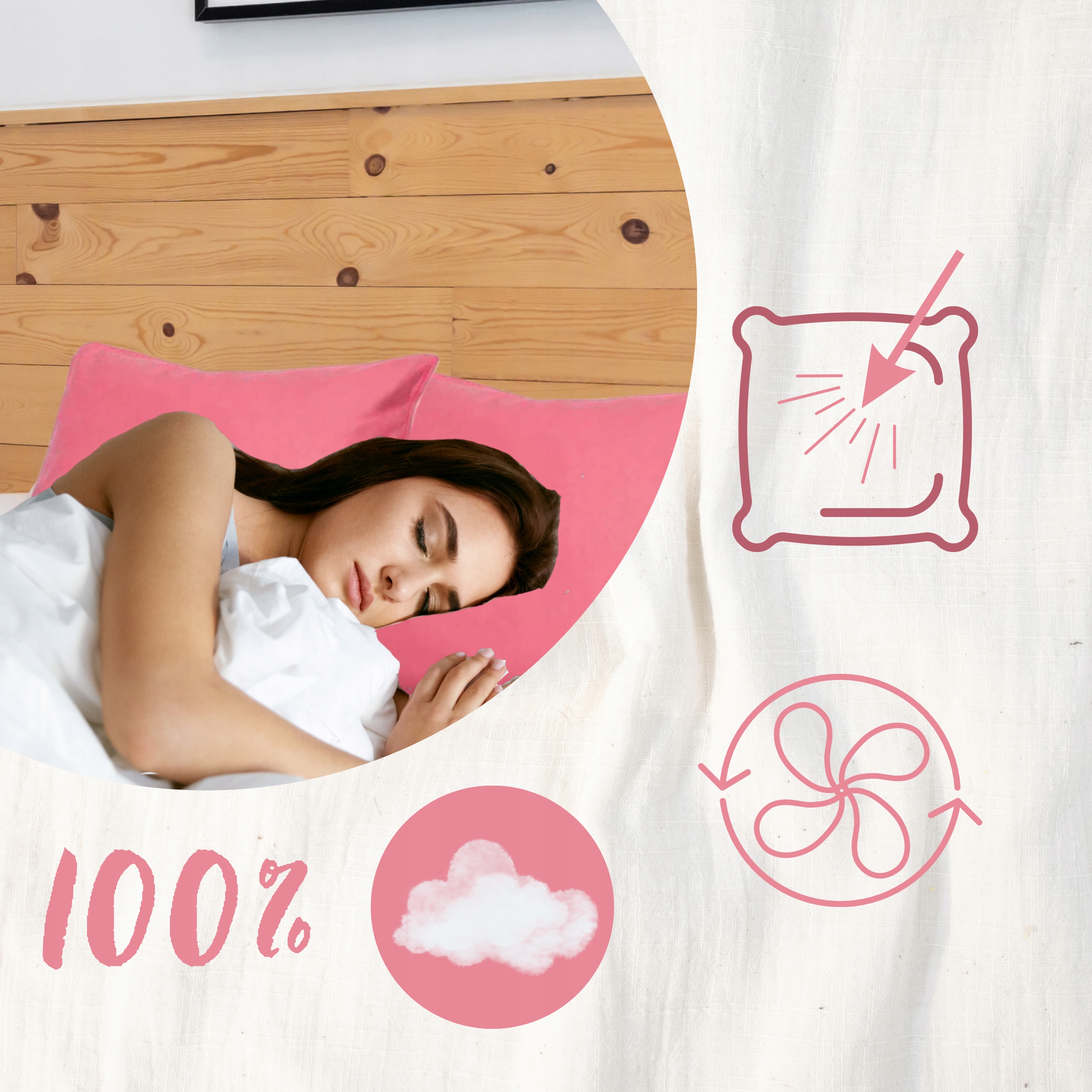 Dzięki 100% wypełnieniu z puchu, poduszka jest niezwykle miękka, dlatego idealnie dopasowuje się do głowy. Nawet podczas spania na boku i przekręceniu się w nocy na drugą stroną, poduszka wciąż pozostaje sprężysta i elastyczna.