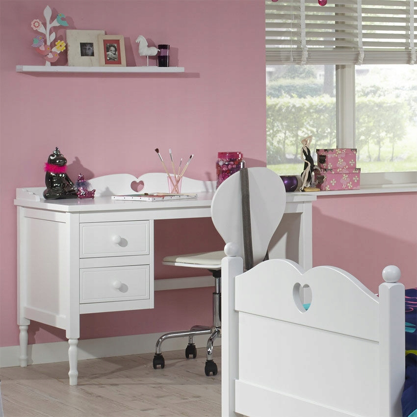 Przedmiotem oferty jest biurko z kolekcji BELLA. Klasyczna i elegancka linia mebli dziecięcych o świeżym i delikatnym wyglądzie. Kolekcja utrzymana jest w jasnej stylistyce uszlachetniona charakterystycznym dekorem z serduszkiem. Dzięki swojej stylistycznej uniwersalność, będzie świetnie wyglądać zarówno w przytulnej sypialni dziecięcej, jak i nowoczesnym pokoju młodzieżowym.