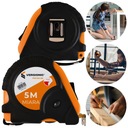 Długość miary wynosi 5 metrów, co sprawia, że jest ona wystarczająco długa do pomiaru większości standardowych powierzchni, zarówno wewnątrz, jak i na zewnątrz budynków. Miara ta jest wykonana z trwałych materiałów, co gwarantuje jej wytrzymałość i niezawodność podczas użytkowania.