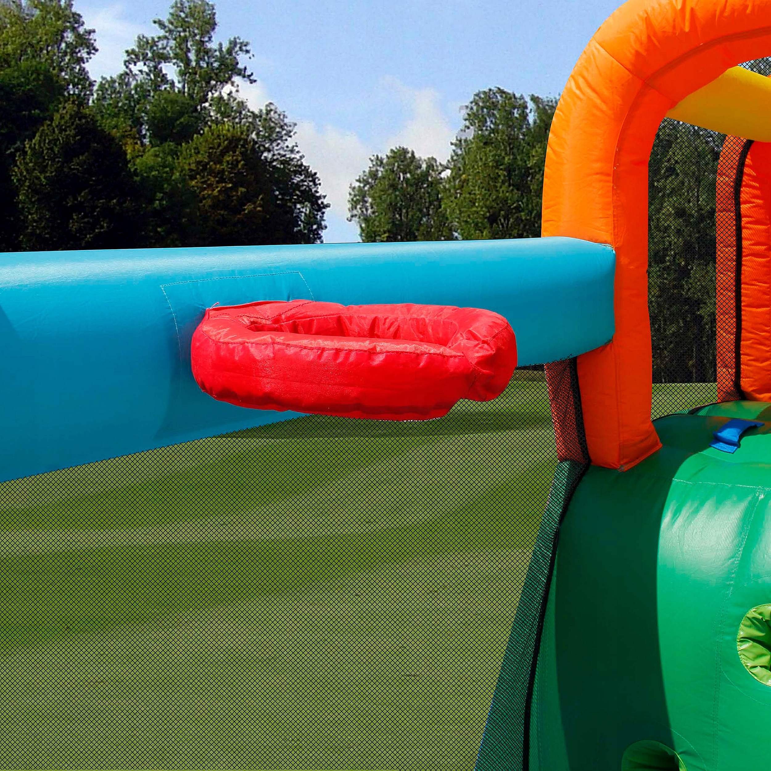 Wyjątkowy dmuchaniec dla dzieci zapewni doskonałą zabawę podczas wakacyjnego wypoczynku. Dzięki zjeżdżalniom i piłeczkom każda pociecha spędzi na zewnątrz niezapomniany czas. Konstrukcja jest łatwa do rozłożenia - wystarczy użyć do tego znajdującej się w zestawie dmuchawy elektrycznej. Konstrukcja została wykonana z wysokiej jakości materiałów, co przekłada się na jej trwałość. Przepuszczające powietrze tkaniny w połączeniu z dmuchawą, która musi być włączona przez cały czas sprawiają, że powietrze z dmuchańca nie uchodzi, tym samym całość jest właściwie naprężona i bezpieczna.