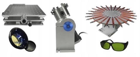 Umożliwia precyzyjne ustawienie materiałów grawerowanych w osi X i Y dla powtarzalnej serii znakowań. Stanowi on element dodatkowy do zestawu, możliwe jest też dokupienie obrotnicy cylindrycznej lub do długopisów, soczewek powiększających lub zmniejszających pole robocze.
