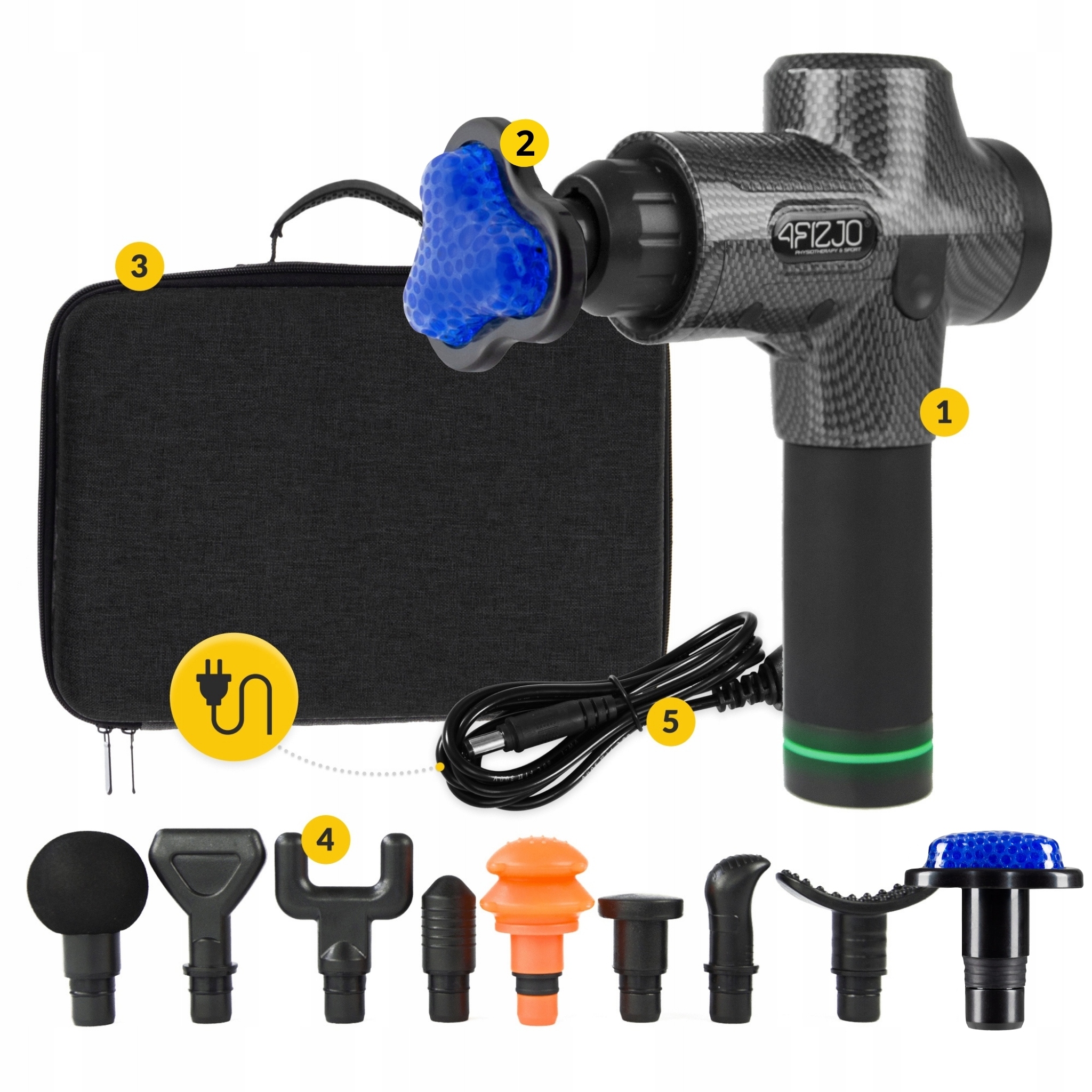 ✔️ В комплекте: пистолет, 9 сменных наконечников, зарядное устройство, чехол и инструкция обслуживания
