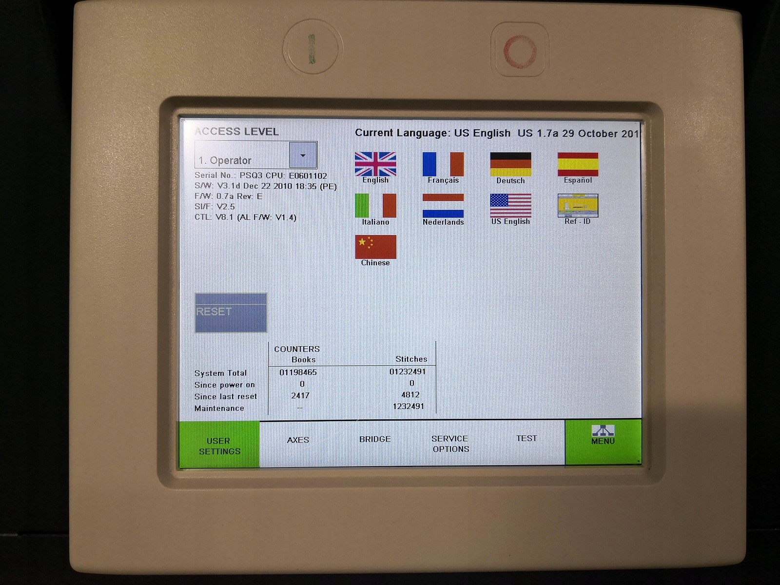Urządzenie ma bardzo mały przebieg, zaledwie 1.300.000 wykonanych broszur (widoczny na jednym ze zdjęć). Standardowy przebieg miesięczny producent szacuje na 120.000 wykonanych broszur, co oznacza, że urządzenie pracowało wedle tej miary zaledwie 11 miesięcy.