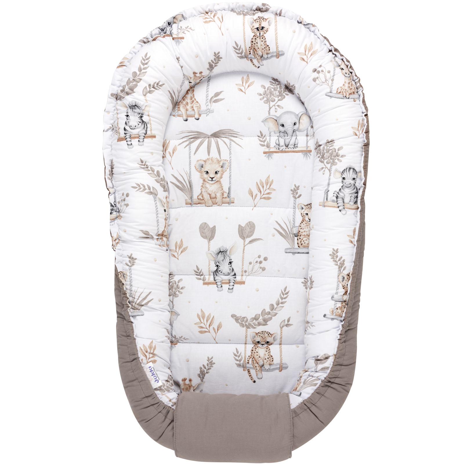 Kokon można skompletować z innymi produktami Jukki – mięciutkimi kocykami Velvet, dekoracyjnymi poduszkami, koszami na zabawki – tak, by przestrzeń twojego malucha była harmonijna i tworzyła spójną całość.