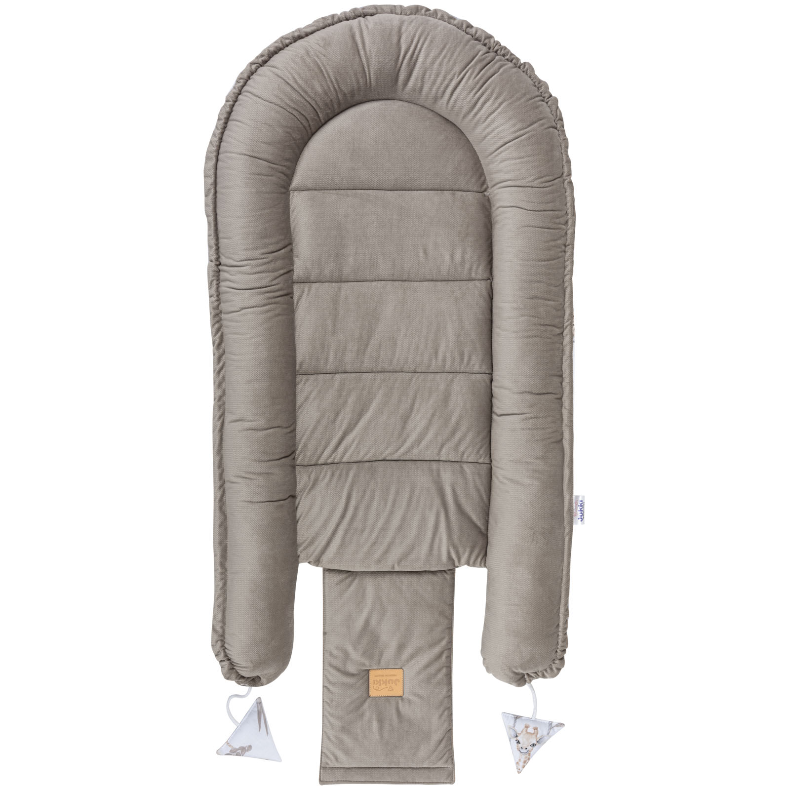 Gniazdko doskonale służy także starszym maluszkom stając się idealną przestrzenią do zabawy, leżenia na brzuszku i pierwszych ćwiczeń – podnoszenia główki czy leżących w jego zasięgu grzechotek. Rozwiązanie sznurków pozwala na używanie kokonu jako przewijaka.