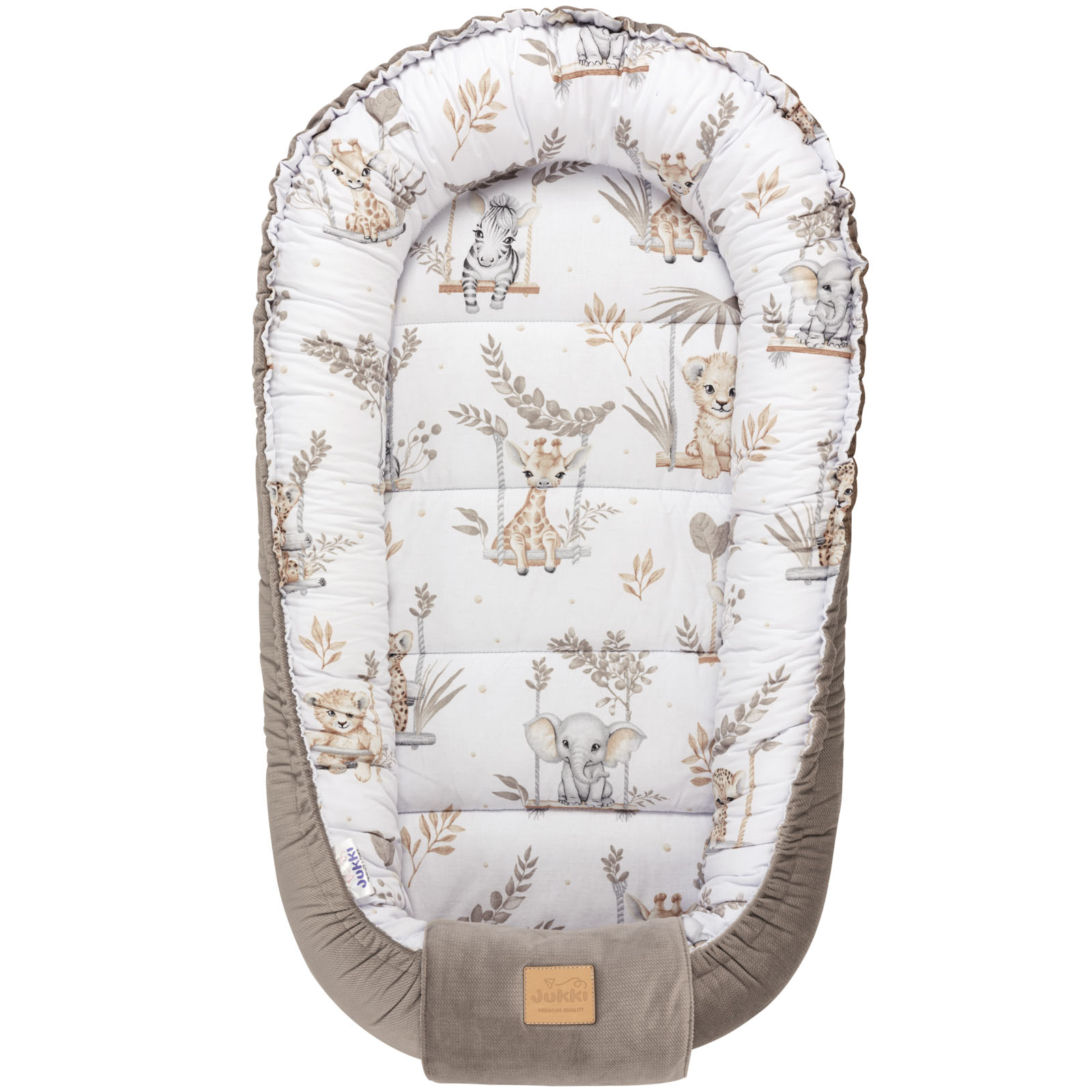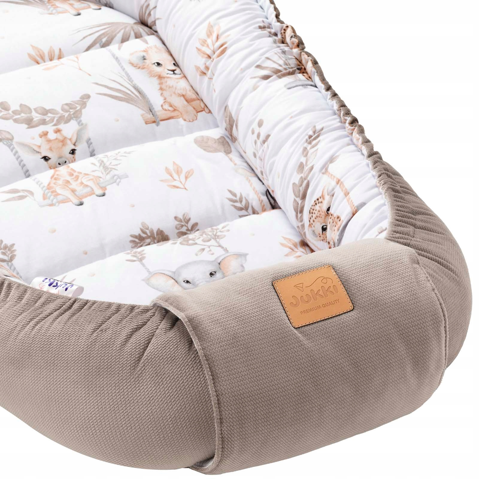 Kokon można skompletować z innymi produktami Jukki – mięciutkimi kocykami Minky, dekoracyjnymi poduszkami, koszami na zabawki – tak, by przestrzeń twojego malucha była harmonijna i tworzyła spójną całość.