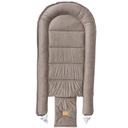 Gniazdko doskonale służy także starszym maluszkom stając się idealną przestrzenią do zabawy, leżenia na brzuszku i pierwszych ćwiczeń – podnoszenia główki czy leżących w jego zasięgu grzechotek. Rozwiązanie sznurków pozwala na używanie kokonu jako przewijaka.