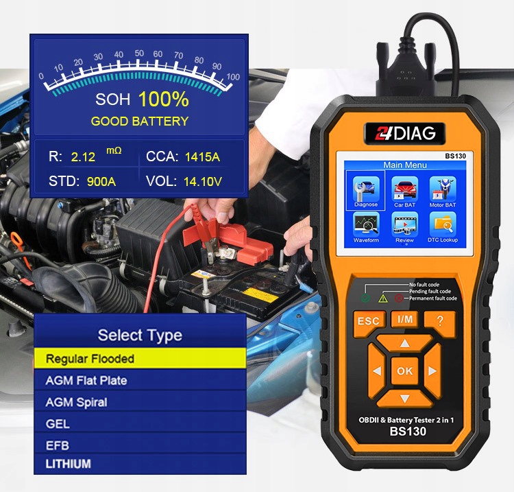 Тестирование батареи: 6V и 12V. диапазон измерения: 2-220AH