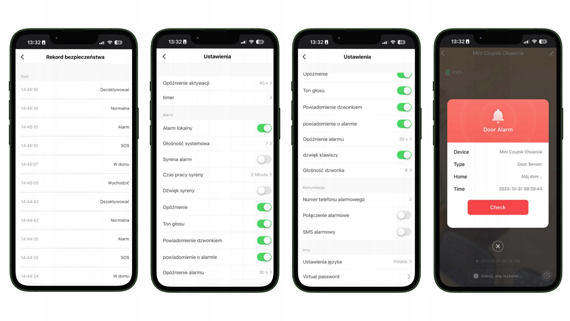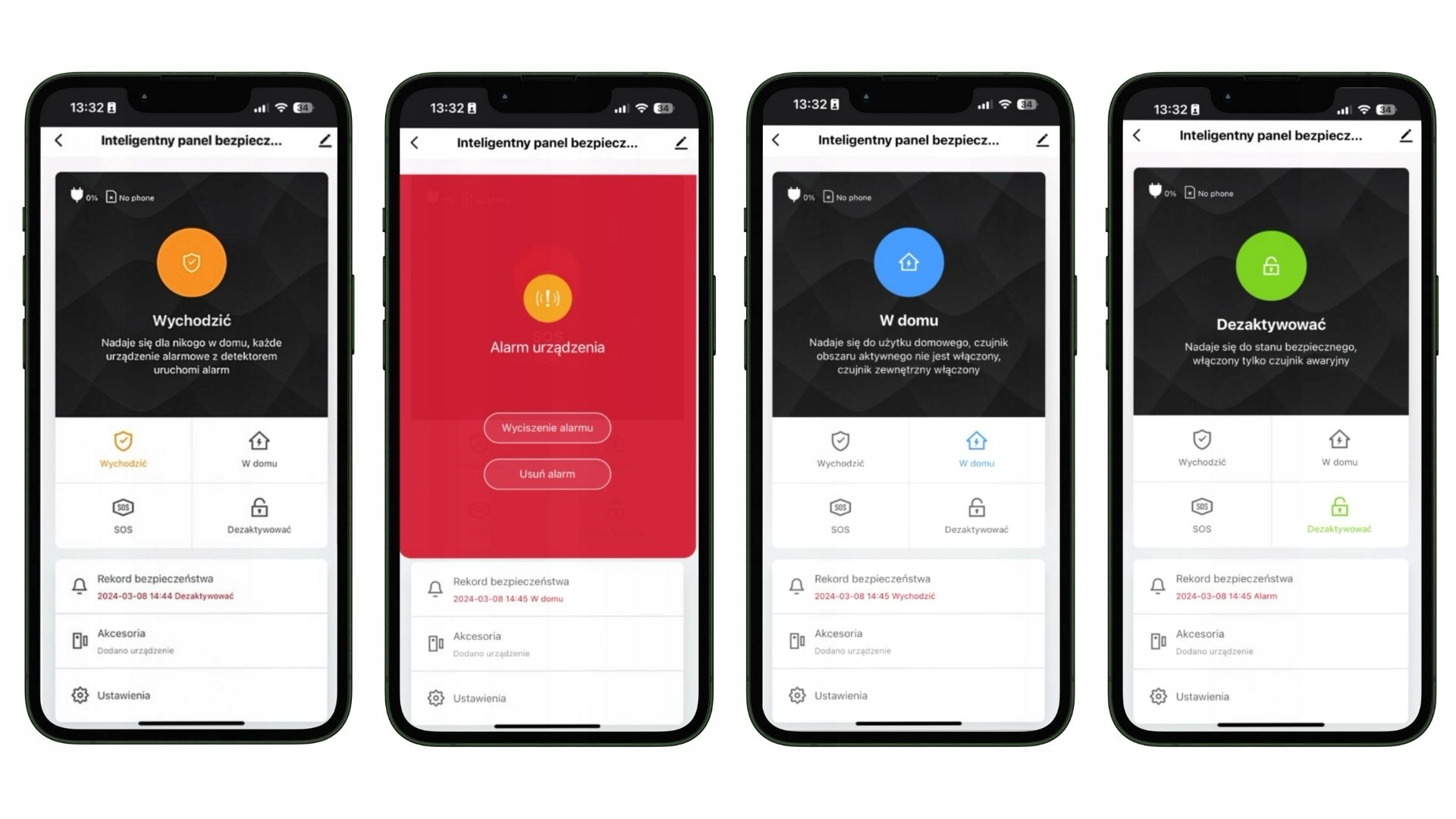 Wszystkie zdarzenia są rejestrowane w aplikacji, co pozwala na dokładny wgląd w historię alarmów i większy spokój ducha.