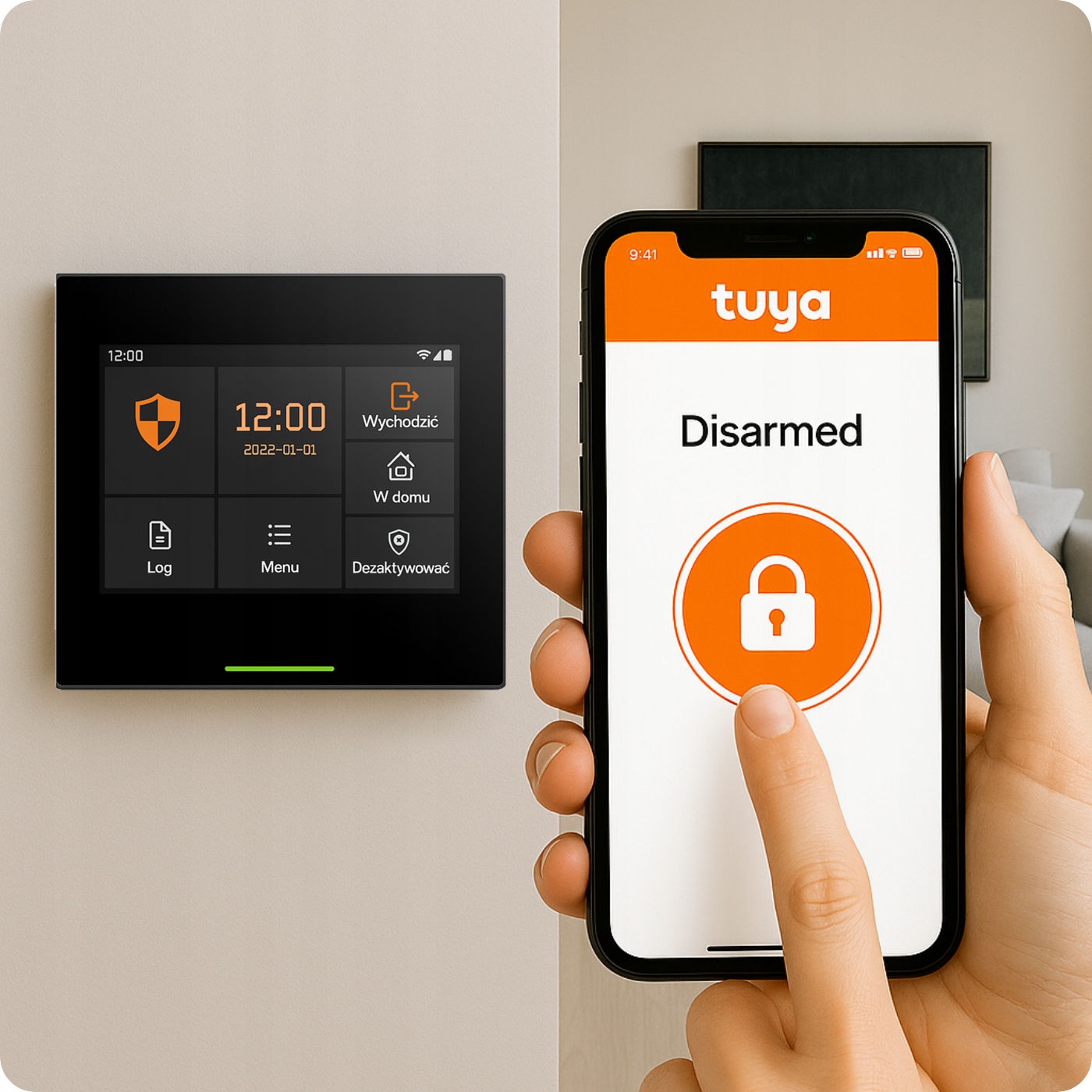 Dzięki integracji z aplikacją Tuya Smart zyskujesz pełną kontrolę nad bezpieczeństwem – gdziekolwiek jesteś. Możesz zdalnie uzbroić lub rozbroić system, otrzymywać powiadomienia w czasie rzeczywistym i szybko reagować na zagrożenia, takie jak ruch, dym czy zalanie.