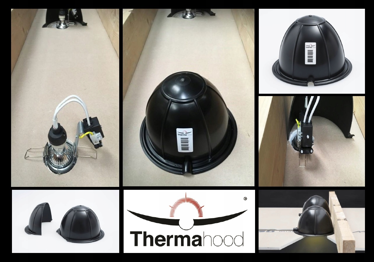 Thermahood to profesjonalna osłona montowana nad oprawą sufitową typu downlight, która:
