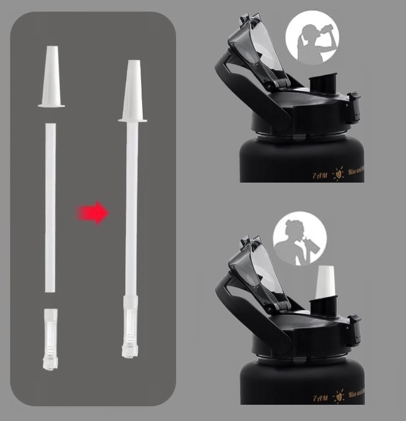 Bidon 2L posiada wyjmowany ustnik wraz ze słomką która zapewnia wygodę podczas picia bez konieczności przechylania głowy do tyłu. To idealne rozwiązanie podczas intensywnych treningów czy jazdy na rowerze. Nasze słomki łączą w sobie funkcjonalność, komfort oraz troskę o środowisko, zapewniając Ci niezapomniane doświadczenia podczas treningów, wycieczek czy codziennych aktywności.