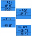 Есть четыре режима времени обозначается как F01-F04. Контроль часов и минут. От 0 до 99 часов 59 минут.