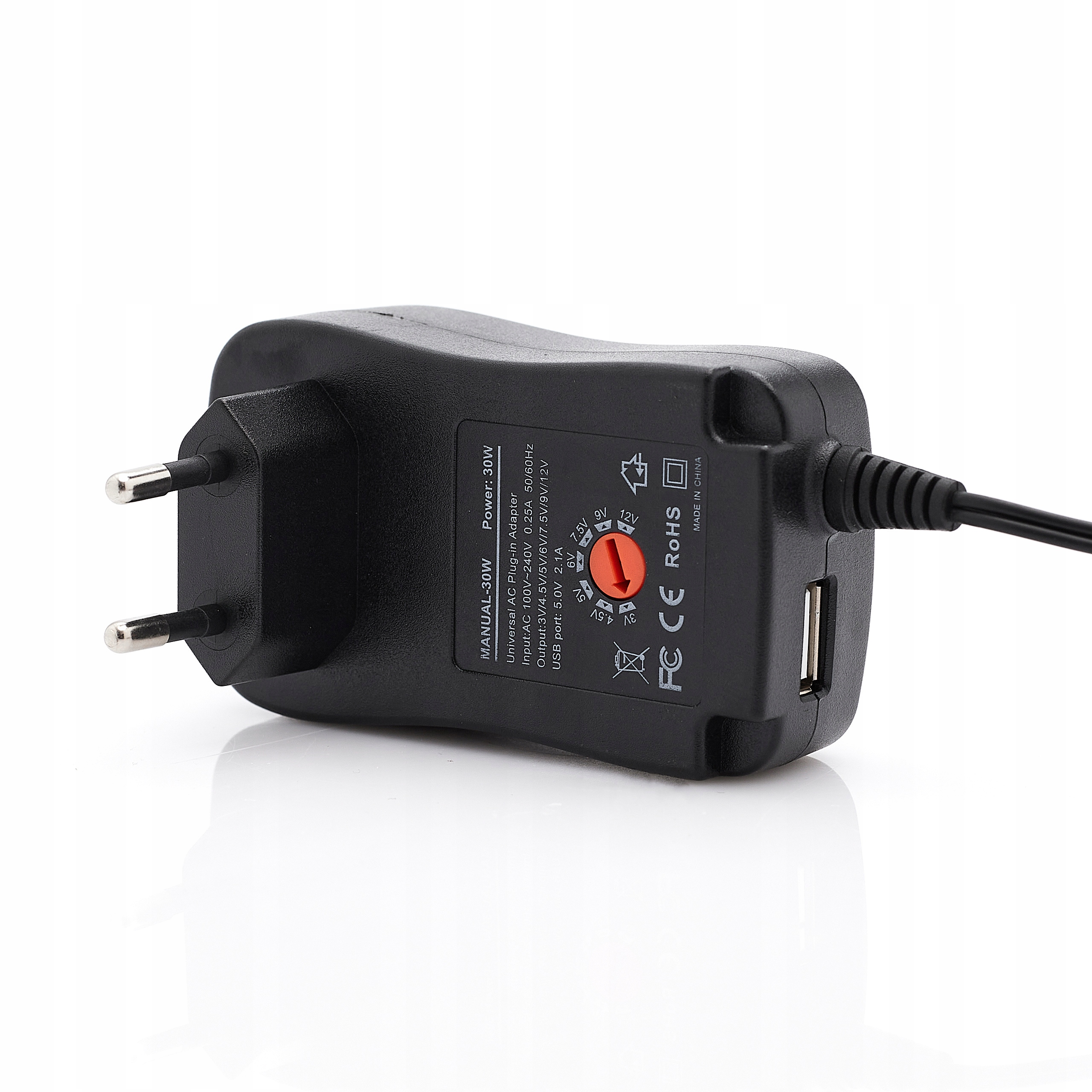 Универсальный адаптер переменного тока, с помощью которого вы подключаете большинство устройств, доступных на польский рынок. Он был оснащен регулировкой выходной мощности, которая должна быть отрегулирована перед подключение оборудования в соответствии с его спецификациями. Блок питания оснащен кабелем длиной 115 см, что обеспечивает большее удобство использования.