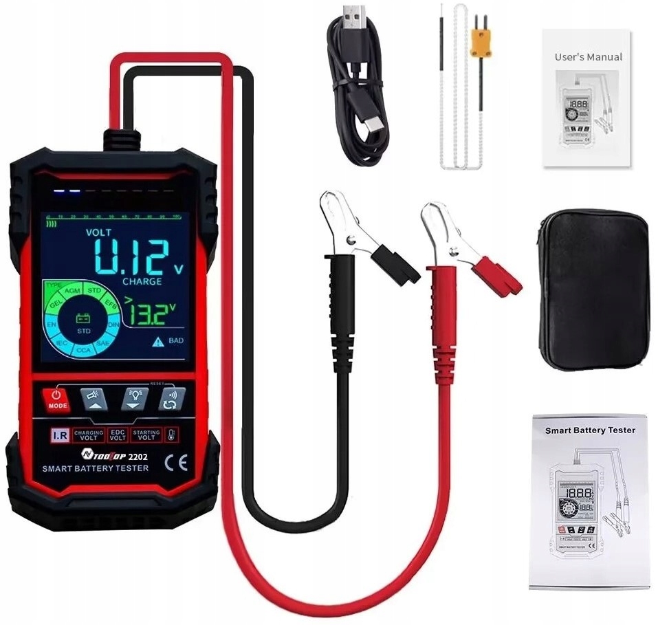 ✅Tester baterii akumulatorów samochodowych ToolTop ET2202 to niewielkich rozmiarów, lekkie i praktyczne urządzenie, które służy do pomiaru i analizy wydajności baterii kwasowo-ołowiowych 12V/24V.
